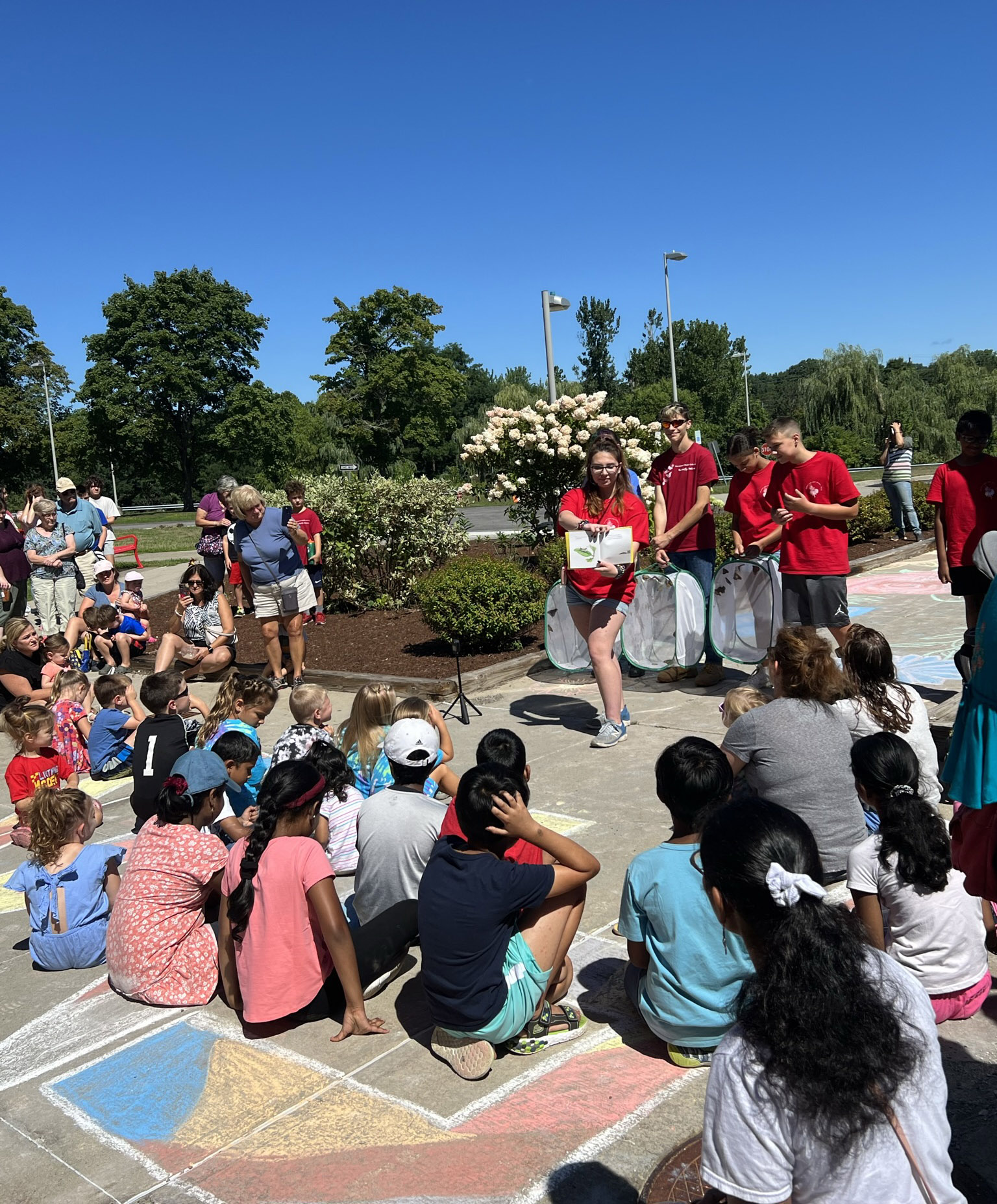 Senior Maura Van Woert has spent her past seven summers volunteering at the garden and read the book “Gotta Go! Gotta Go!” to the students and families who attended the release ceremony this past Friday. Maura is one of many students who volunteer at the Butterfly Station even after their FMS years.