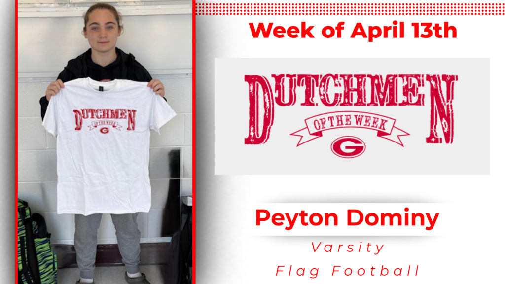 Congratulations to Peyton Dominy (Varsity Flag Football) and Maryn Vrooman (Varsity Softball) for earning DOW (Dutchmen of the Week) honors for the week of April 13th.