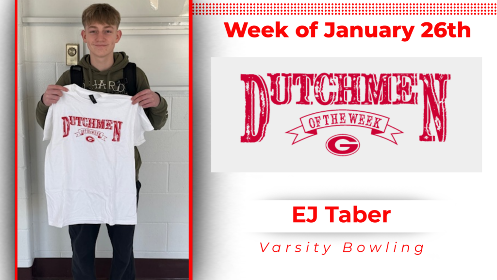 Congratulations to EJ Taber (Varsity Bowling) and Kylie Dinan (Mod 9 Girls Basketball) for earning DOW (Dutchmen of the Week) honors for the week of January 26th